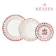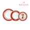 A Christmas Memories 18 részes karácsonyi étkészlet hófehér porcelán tányérjait piros és zöld színű karácsonyi motívumok díszítik: csillagok, virágok, füzérek, a desszertes tányéron pedig a télapó is látható csillagok között egy hőlégballonban.
