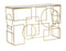 Emelje otthona eleganciáját a következő szintre ezzel a téglalap alakú, aranyszínű fém konzolasztallal! A tükrös üveglap és a geometrikus minták finoman szövött részletei tökéletesen ötvözik a modern stílust a luxussal. Az arany fényessége és a tükör csillogása együtt lenyűgöző hatást kelt, amely ragyogást és kifinomultságot visz bármely helyiségbe. Ez a konzol nemcsak praktikus bútordarab, hanem önmagában is egy dekoratív ékszer otthonában.