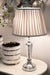 Ez a kifinomult glamour asztali lámpa a klasszikus formavilág és a modern elegancia találkozása. A fényes fém vázzal készült lámpatestet kristályhatású díszítés emeli ki, amely különleges fénytörést biztosít. A pliszírozott szürke textilernyő lágy, otthonos fényt ad, így ideális választás nappali, hálószoba vagy dolgozószoba kiegészítőjeként.