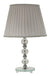Ez a kifinomult asztali lámpa a klasszikus eleganciát képviseli, melyet üveggömbökből álló talp és pliszírozott szürke textilernyő tesz különlegessé. A 30x48 cm-es lámpa letisztult, mégis dekoratív formavilágával tökéletes választás bármely otthonba.