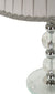 Az üveg talp játékos fénytörése modern hatást kölcsönöz, míg a pliszírozott textilernyő hangulatos, lágy fényt biztosít. Remekül mutat nappaliban, hálószobában, vagy akár elegáns előszobai komódon is.