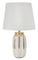 Ajánlott stílus: modern, glamour, elegáns Anyag: kerámia, fém és textil Szín: fehér és arany Méret: magasság: 40,5 cm, szélesség: 25 cm, mélység: 25 cm Frekvencia: 50 HZ | Teljesítmény: 40 WATT | Foglalat: E27 | Izzók száma: 1