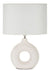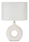 Ez a modern fehér kerámia asztali lámpa egyedi kör alakú talppal és letisztult textil lámpaernyővel készült. Stílusos megjelenésével nemcsak praktikus fényforrás, hanem dekoratív lakberendezési elem is.