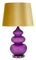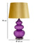 Ez a modern és glamour stílusú asztali lámpa különleges, háromszintes formájú, lila üveg testtel rendelkezik, amely azonnal magára vonzza a figyelmet. Az aranyszínű bársony ernyő eleganciát és luxust sugároz, míg a stabil fém talp biztosítja a tartósságot és a prémium megjelenést.