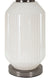 A Ø 37,5x65 cm méretű lámpa ideális a nappali kiegészítő fényforrásaként, de a hálószobában vagy az irodában is remekül mutat. Letisztult, modern vonalvezetése révén tökéletesen illeszkedik a kortárs és elegáns belső terekhez. Anyag: üveg, fém és textil Szín: fehér és szürke Méret: magasság: 65 cm, szélesség: 37,5 cm, mélység: 37,5 cm Frekvencia: 50 HZ | Teljesítmény: 40 WATT | Foglalat: E27 | Izzók száma: 1