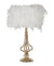 Ez a tollas asztali lámpa a luxus és az elegancia tökéletes kifejezője. Az arany színű, díszes vázzal és kristályhatású részlettel készült talp exkluzív megjelenést biztosít, míg a fehér tollas ernyő lágy és meghitt fényt áraszt.