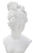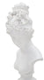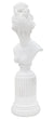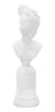 Ez egy klasszikus stílusú, fehér női mellszobor, amely oszlop-szerű talapzaton áll. Elegáns és antik hatású dekoráció.