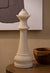 Dekoratív sakkfigura – királynő, fehér színű testtel és arany gömb díszítéssel. Elegáns és időtálló dekoráció, amely különleges karaktert ad bármely enteriőrnek.