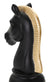Ez egy fekete-arany színű, elegáns dekoráció, amely a sakk ló (huszár) figurát formázza. Karakteres és modern megjelenésű darab.