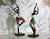 Modern táncos nő szobor fekete alapszínnel és élénk, geometrikus színblokkokkal. Elegáns, vidám és energikus dekoráció, amely feldobja bármely enteriőrt.