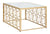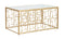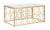 Ez egy elegáns aranyszínű fém dohányzóasztal tükörüveg asztallappal, geometrikus és lekerekített vonalakkal. Az elegancia és a dizájn egyedi vonalakban egyesül, hogy minden szobát különlegessé tegyen.