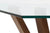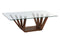 Modern megjelenésű dohányzóasztal barna diófa alapon, üveg asztallappal.