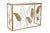 Ez a konzolasztal az otthonod ékköve lehet. Az arany színű fém váz modern és elegáns megjelenést kölcsönöz, míg a tükrös asztallap luxusérzetet teremt és vizuálisan is nagyobbá teszi a teret. A leveles dekoráció pedig egyedi és exkluzív karaktert ad a bútornak.