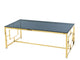 Elegáns és praktikus arany színű dohányzóasztal, edzett üveg asztallappal.