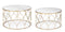 Modern kerek dohányzóasztal 2 db szett arany keret üveg lappal