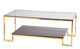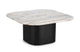Kortárs megjelenésű dohányzóasztal, mely fekete acél alapokon nyugszik, tetején barna mangófa lappal, melynek alakja szabálytalan. A természetes barna fa asztallap természetességet sugároz.