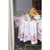 Shabby Chic stílusú bájos és romantikus rózsa mintás kerek nyári asztalterítő: rózsaszín alapon bézs pöttyök, és piros rózsák segítenek bűbájos hangulat megteremtésében az étkezőasztalnál.