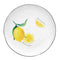 Ez a minőségi porcelán lapostányér nagy citromokkal díszített, barna szegéllyel, enyhén egyenletlen, különleges felülettel rendelkezik,