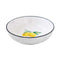 Ez a minőségi porcelán mélytányér nagy citromokkal díszített, barna szegéllyel, enyhén egyenletlen, különleges felülettel rendelkezik,