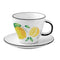 Ez a minőségi porcelán teás csésze aljjal nagy citromokkal díszített, barna szegéllyel, enyhén egyenletlen, különleges felülettel rendelkezik.