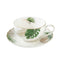 Ezt a prémium porcelán teás csésze szettet ginkgo fa levelei díszítik. A hullámos kivitel és a fehér alapon arany színű perem igazán elegáns, a luxus érzetét kelti.