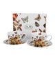 Porcelán eszpresszó kávés csésze + alj 110 ml 2 személyes dobozban madaras Linnea. A kollekciót élénk színű festett virágok és egy bájos kolibri motívuma díszíti.