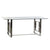 Ez a modern étkezőasztal egy elegáns és stílusos bútordarab, melyet ezüst színű acélváz és üveg asztallap jellemzi. A letisztult design és a magas minőségű anyagok együttesen teremtenek egy lenyűgöző és funkcionális étkezőt.