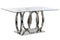 Ez a 160x90x76 cm-es étkezőasztal a kortárs dizájn és a prémium anyagok tökéletes kombinációja. Az edzett üveg asztallap letisztult, légies megjelenést biztosít, míg az ezüstszínű fém lábak egyedi körkörös kialakításukkal garantáltan magukra vonzzák a tekinteteket.
