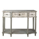 Antikolt, koptatott felületű, fehér színű vintage konzolasztal, 4 díszes fiókkal a minőségi country stílusú lakberendezés egyik vezetőjétől, a holland Clayre&Eef-től.