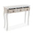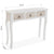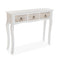 Isabelle vintage stílusú fehér fa konzolasztal, három fiókkal. Bejárathoz, folyosóra, vagy a nappaliba praktikus és dekoratív megoldás a country stílus kedvelőinek.