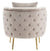 A fotel ívelt gombos háttámlával rendelkezik, kényelmes bársony ülőfelülettel, és párnával.