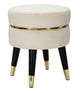 Szürke színű bársony modern megjelenésű puff arany díszítéssel – elegáns kiegészítő, amely a nagy hollywoodi dívák öltözőinek hangulatát idézi. A puha bársonyborítás és a fényes aranyszínű részletek kifinomult luxust sugároznak, míg a fekete fa lábak stabil tartást biztosítanak. Tökéletes választás a hálószobába, nappaliba vagy öltözősarokba – hogy minden nap sztárnak érezhesd magad.