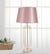 A púderrózsaszín selyem hatású lampabúra tökéletes színharmoniát alkot az arany alapzattal, lágy, meleg fényt biztosítva. A rose gold és arany árnyalatok trendy színkombinációt teremtenek, amely különösen népszerű a modern lakberendezésben.