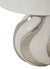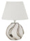 Ez a kerámia asztali lámpa különleges hullámos formájú talppal rendelkezik, amelyet fényes fehér és ezüst színek elegáns kontrasztja tesz igazán figyelemfelkeltővé. A lámpát klasszikus fehér textil ernyő egészíti ki, amely lágy fényt biztosít, így otthonos és harmonikus hangulatot teremt.