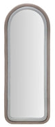 Fedezd fel ezt a különleges modern tükör darabot, amely fa kerettel, szövettel bevonva, C betűt idéző formával rendelkezik.
