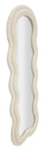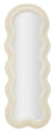 Stílus és funkcionalitás találkozik ebben a modern tükör-ben, amely Krémszínű Modern stílusú fali tükör fa kerettel, bouclé szövettel bevonva, lágy és hullámos formákkal.