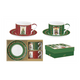 Karácsonyi porcelán csésze aljjal 250 ml díszdobozban, vörösbegy madárkával.