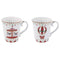 Ezt a karácsonyi porcelán bögrét fehér alapon piros és arany színű geometriai minták és egy körhinta / hőlégballon díszíti mellyel egy ünnepi vidámparkban érezheted magad.
