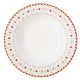 Ezt a karácsonyi porcelán lapostányért fehér alapon piros és arany színű geometriai minták díszítenek, mellyel egy ünnepi vidámparkban érezheted magad.