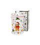 Ez a karácsonyi kávés csésze szett rendkívül bájos és ünnepi hangulatot áraszt. A porcelán csésze díszítését egy aranyos maci adja, amely mikulássapkát és sálat visel, körülötte mézeskalácsfigurák, karácsonyi cukorpálcák és fagyöngyök is láthatók. A színes, részletes minták az ünnepi szezonra jellemzőek, így ideális választás a karácsonyi kávézáshoz.