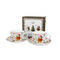 Ez a karácsonyi teás csésze szett rendkívül bájos és ünnepi hangulatot áraszt. A porcelán csésze díszítését egy aranyos maci adja, amely mikulássapkát és sálat visel, körülötte mézeskalácsfigurák, karácsonyi cukorpálcák és fagyöngyök is láthatók. A színes, részletes minták az ünnepi szezonra jellemzőek, így ideális választás a karácsonyi kávézáshoz.