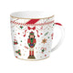 Nutcracker Twist karácsonyi porcelán bögre 2 db szett. A fehér porcelánt játékos diótörő és csíkos piros motívumok díszítik.