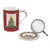 Karácsonyi fém szűrős porcelán teás bögre, porcelán tetővel, díszdobozban Festive Avenue.