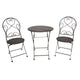 Fém kerti asztal szett két db székkel fehér színben, vintage jellegű míves kialakítással. Felülete kissé antikolt. Sziesztázz romantikus hangulatban a kertedben, a fák hűsítő árnyékában.