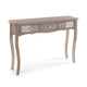 Isabelle vintage stílusú fehér fa konzolasztal, három fiókkal. Bejárathoz, folyosóra, vagy a nappaliba praktikus és dekoratív megoldás a country stílus kedvelőinek.