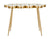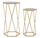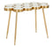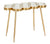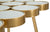 Mondern megjelenésű kisasztal arany fém vázzal, amelynek asztallapját több kör alakú, tükrös üveg betét alkotja. Egyedi és modern designja igazi látványosság, amely eleganciát és luxust sugároz. Különleges formavilága miatt ideális választás nappaliba, előszobába vagy hálószobába dekorációs bútordarabként.