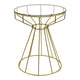 Ez egy elegáns aranyszínű fém kerek kis lerakó kisasztal, fekete üveglappal. Az arany szín és a fekete felületek a glamour egyik kedvenc megjelenítése. Fényűző és csillogó elem az otthonodba, amelyek a Hollywoodi csillogást idézik fel.