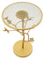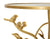 Ez a különleges arany kisasztal finoman kidolgozott madár- és virágdíszeivel igazi eleganciát sugároz. A vékony, üveglapos felület és a természet ihlette design harmonikusan egyesíti a praktikumot és a stílust. Tökéletes választás nappaliba, hálószobába vagy előszobába, ahol dísztárgyak, növények vagy könyvek elegáns elhelyezésére szolgál.