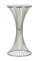 Exkluzív ezüst színű kisasztal, amelynek kecses fém váza elegáns, fonott hatású vonalakkal díszített. A felső rész márvány asztallap, természetes erezetmintával, amely kifinomult megjelenést kölcsönöz. Letisztult, modern stílusának köszönhetően tökéletes választás nappaliba, hálóba vagy akár előszobába is.