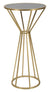 Stílusos kerek kisasztal aranyszínű fém vázzal és tükörhatású üveglappal. Letisztult, modern vonalai eleganciát sugároznak, így tökéletes kiegészítő a nappaliba, hálószobába vagy akár előszobába is. Könnyen kombinálható más arany kiegészítőkkel, hogy harmonikus enteriőrt teremtsen.